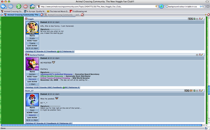 On the 19th August 2008, at 12:12pm (ACC time), the unthinkable happened, hoggle himself decided to grace our little fanclub with a post of his very own. This has been documented and saved here for all eternity.